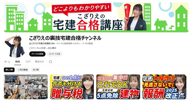 小澤梨恵氏は、自身のYouTube番組「こざりえの裏技宅建合格チャンネル」で、宅建試験の合格に役立つ情報を発信しています。